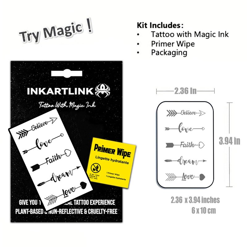INKARTLINK semi-permanent temporary tattoos, small design tattoos, suitable for cool boys and girls, waterproof and non-reflective, exquisite packaging, unique design(Arrow of love)
