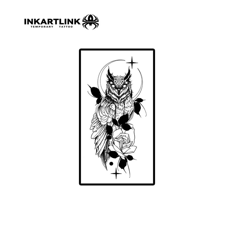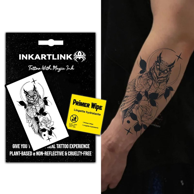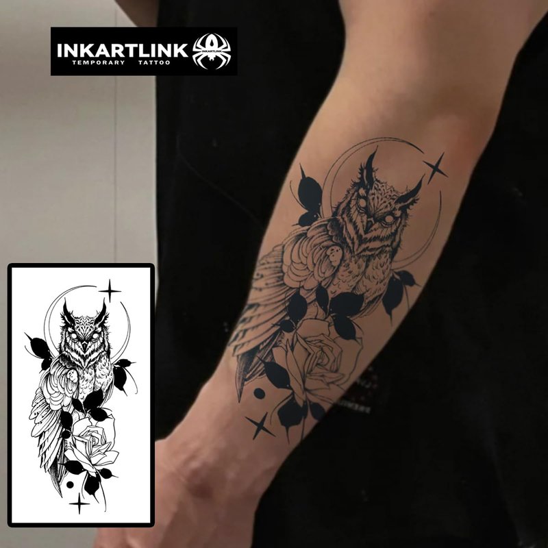 INKARTLINK Temporary Tattoos, Semi Permanent Tattoos, Adult Art Designs, Waterproof Temporary Tattoos, Party Favors, Tattoo Stickers Realistic, No Adhesive, Lasts 1-2 Weeks (Owl)