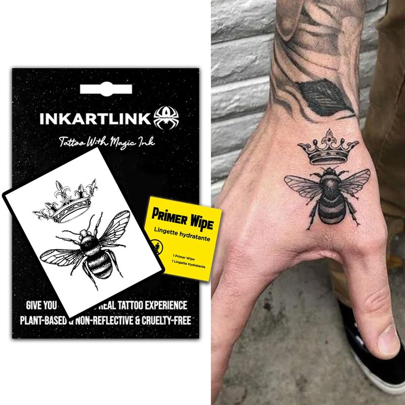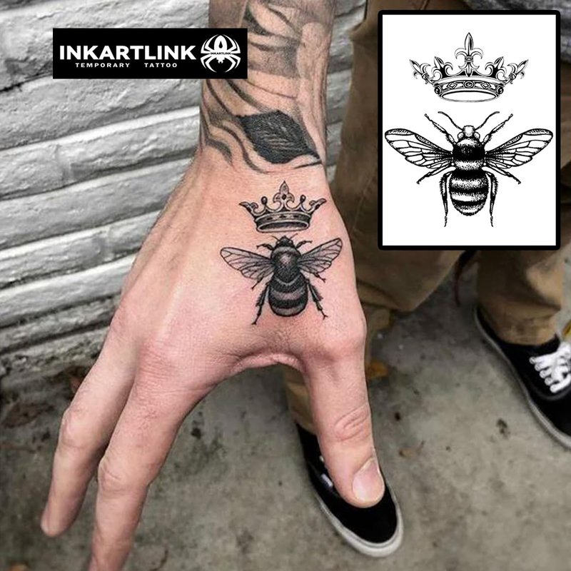 INKARTLINK Temporary Tattoos, Semi Permanent Tattoos Adult Art Designs Waterproof Temporary Tattoos Party Favors Tattoo Stickers Realistic, No Adhesive, Lasts 1-2 Weeks (Queen Bee)
