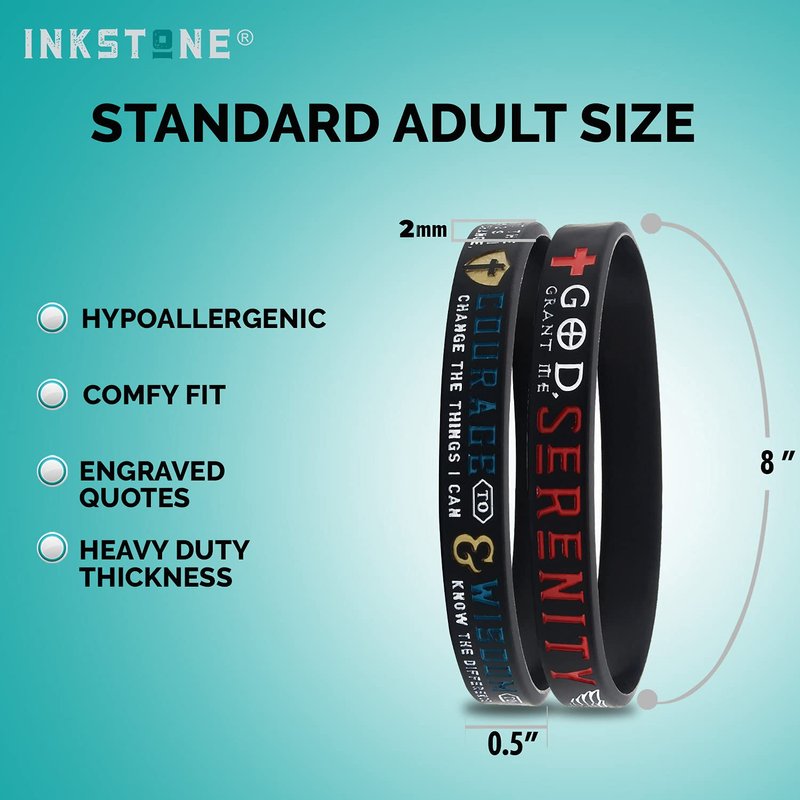 Inkstone Serenity Prayer Bracelets Silicone Wristbands Unisex Sobriety Recovery Gifts