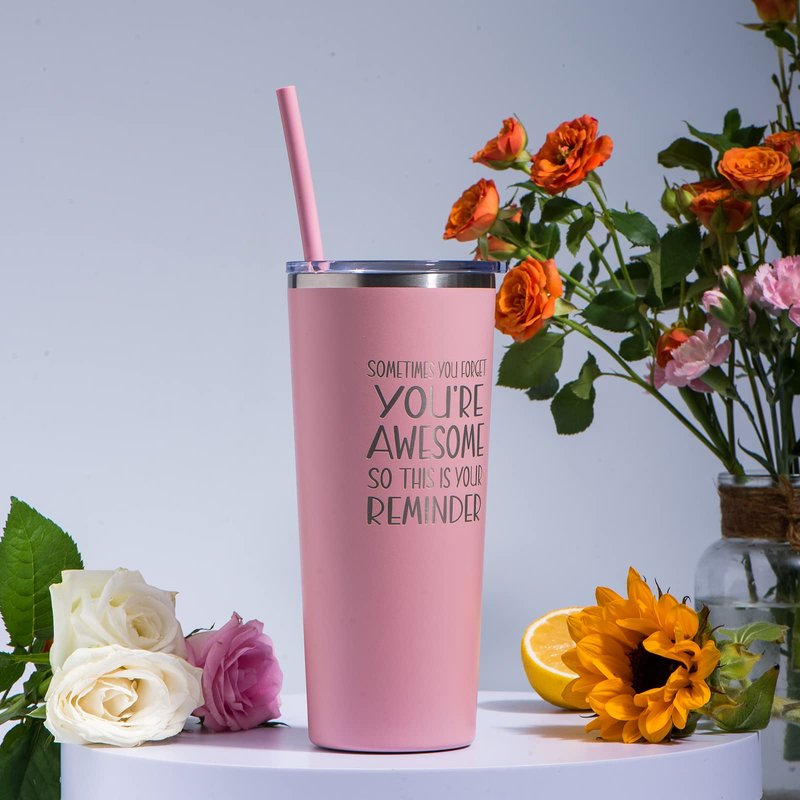 - PERFECT PRESENT TO ENCOURAGE -This tumbler have a funny message "Sometime you forget you're awesome, so this is your reminder",which is really inspirational gifts for women,mom,best friend,sister,coworker,employee,teacher.