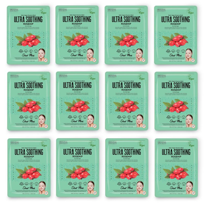Innerest Original Derma Beauty Collagen Face Masks 12 PK Vegan Ultra Soothing Rosehip Face Mask Skin Care Sheet Masks Set for Beauty & Personal Care Korean Face Mask