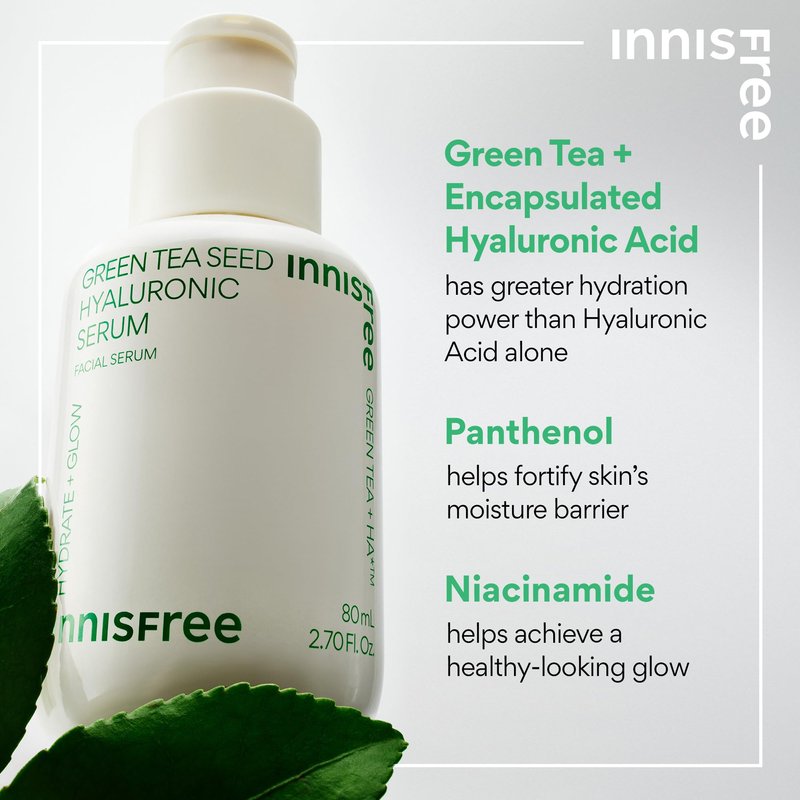 innisfree Green Tea Seed Hyaluronic Serum with Panthenol and Niacinamide, Korean Face Serum for Hydration and Glow (Packaging May Vary)