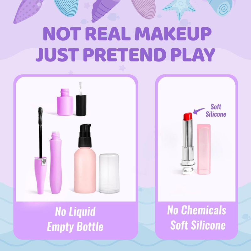 - DESIGN INSPIRATION - We listened to concerned mothers who wanted a kids makeup sets for girls toy that's safe for their little ones. Many mothers mentioned that their children, even though they are quite young, have already started showing an interest in makeup and a desire to enhance their beauty. As a response, we have introduced a fun and imaginative mermaid gift pretend play for toddlers 3-5 collection. Our toddler play makeup set for kids 3-5 provides a safe and worry-free way for kids to explore makeup play.