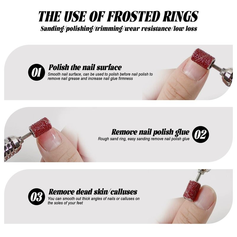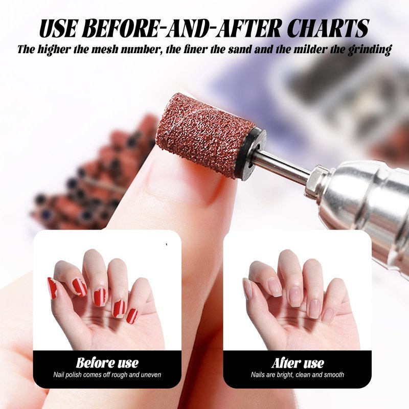 FEATURES: • 100% Brand New with Good Quality for Manicure or Pedicure • Can Be Used on Natural and Artificial Nails • Fit nail drill bits with 3/32" shank size • GRIT - #180; Sanding Bands fits all (professional/regular) drills using 1/4" x 1/2" size bands • Bands are disposable so there is no need to Disinfect between Client