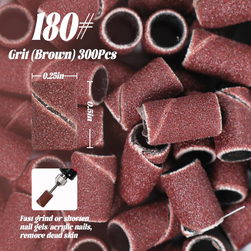 InnoLife - 300pcs Grit 180# Nail File Sanding Bands Replacement for 3/32" Shank Size Nail Drill Bits Fit