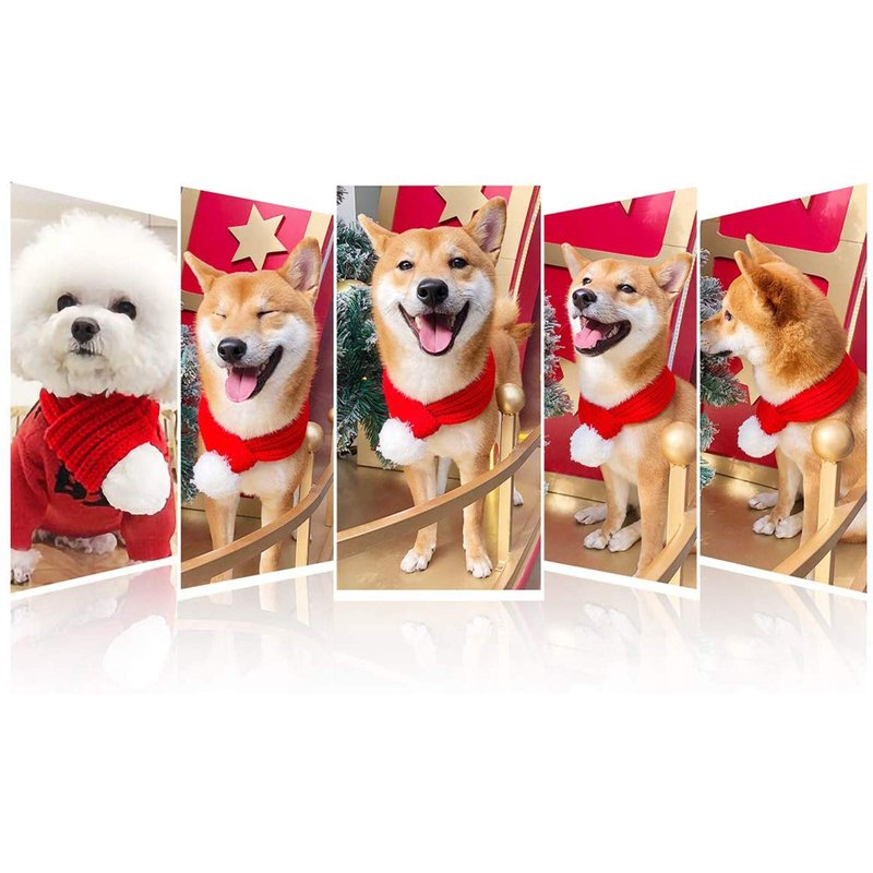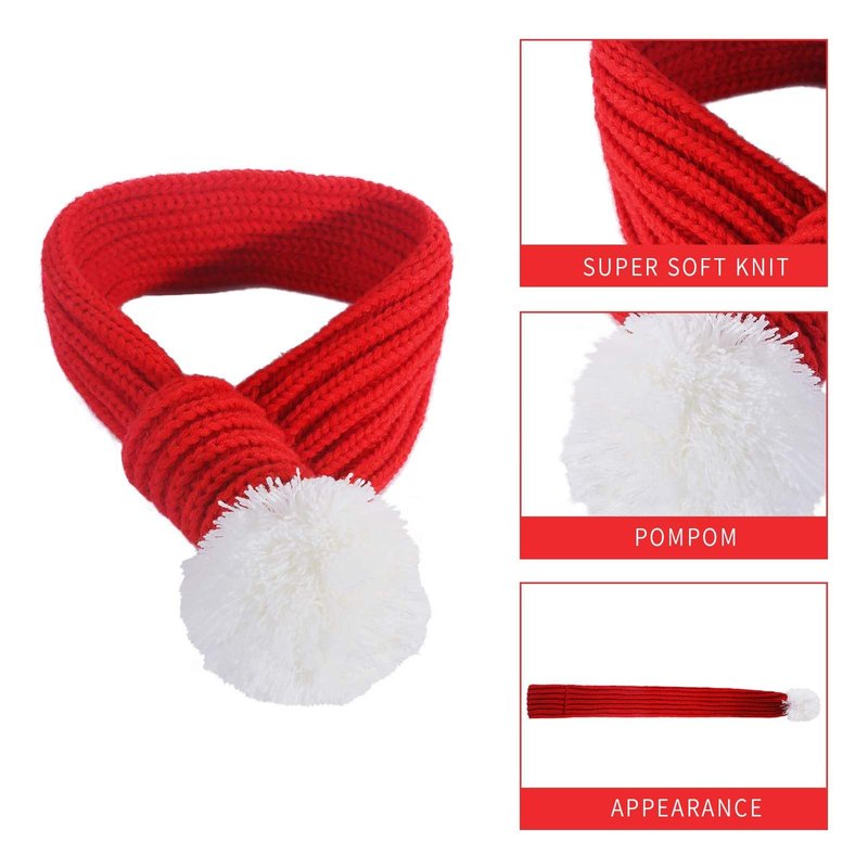 - 【Dog Xmas Scarf Design】Unique scarf design is easy to slip on (needn't to tie a knot) and your furry friend can't take it off on his own. Red stripes with white pom poms perfectly match the mass-tone attune of winter and Christmas. The fully knitted scarf will keep your pet warm in winter.