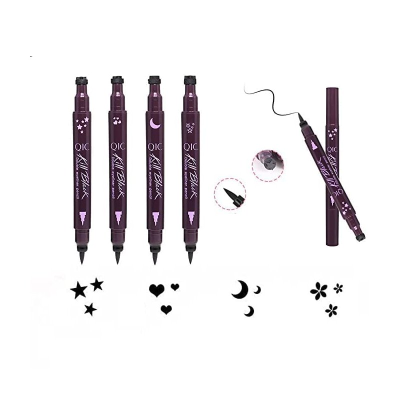- Dual-ended design ,one eyeliner for two usages. One end can be used to achieve perfect lines, while the other end can used to decorate your eyes with stars, flowers, moons and hearts.