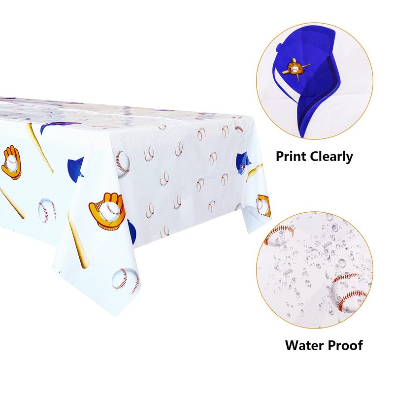 - Valued Package: 4 pack baseball themed plastic tablecloth, measured: 51*86 inch(130*220cm). Proper size for party tables and set ups.