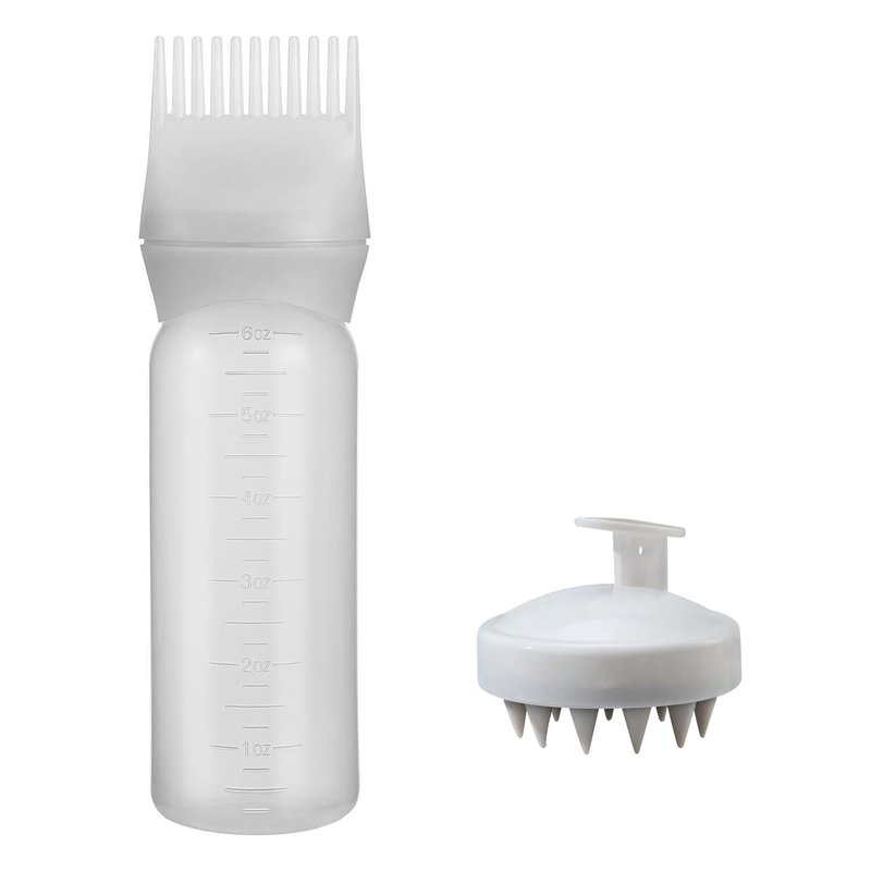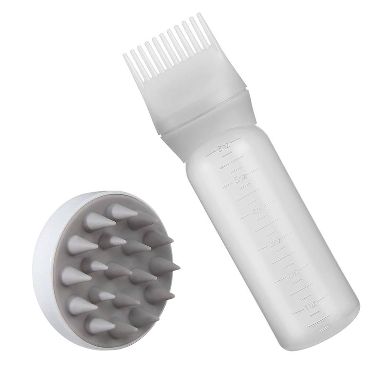 Style, Dye & Straighten Hair On Any Occasion With Our Hair Oil Applicator Bottle And Scalp Massager Set! We designed our hair oiling bottle comb to provide you with a simple, quick, and convenient way to apply oils, dyes, and more from the roots to the tips while offering more control for even coverage. This massager and oil applicator for scalp is suitable for women and men making it the perfect gift for friends, family, co-workers, etc. on any occasion throughout the year to make day to day hair care simpler. Style, Dye & Straighten Hair On Any Occasion With Our Hair Oil Applicator Bottle And Scalp Massager Set! We designed our hair oiling bottle comb to provide you with a simple, quick, and convenient way to apply oils, dyes, and more from the roots to the tips while offering more control for even coverage. This massager and oil applicator for scalp is suitable for women and men making it the perfect gift for friends, family, co-workers, etc. on any occasion throughout the year to make day to day hair care simpler. Reusable, Durable & Versatile – Made For Long Term Use The hair oil dispenser bottle comb is made using lightweight and durable materials to make sure it can handle daily use. The hair color bottle applicator is easy to open and refill with the oils and dyes of your choice to reuse. Our scalp scrubber massager is designed with silicone teeth that are firm yet gentle on the scalp. The silicone scalp scrubber is suitable for both wet and dry use so you can enjoy a soothing massage anytime. There’s More To Love: - Makes the perfect gift for women and men - Easy to clean to provide long term use - Lightweight and easy to carry when on the go - Made without relying on any harsh materials - The bottle features a graduated scale on the side Package Includes: 1 x Hair Root Comb Applicator Bottle 1 x Handheld Scalp Massager Style And Color Hair The Way You Want With Our Scalp Massager And Oil Applicator Bottle For Scalp!