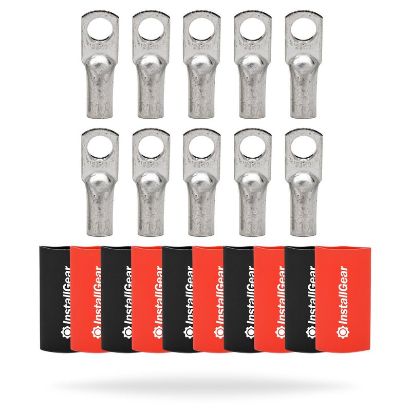 - COMPREHENSIVE 10-PACK BUNDLE: Complete package contains 10 tinned copper lugs, along with 5 red and 5 black heat shrink tubes, providing everything required for secure and organized 4 gauge wire connections.