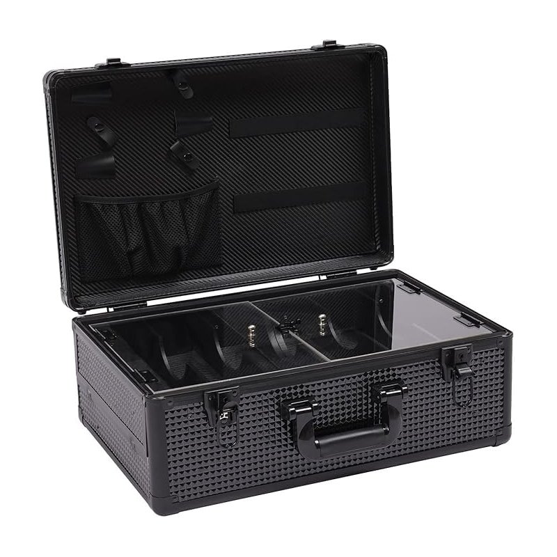 - 【Professional Barber Case】Portable travel carrying display and storage organizer attache case for barber stylists,Great to organize clippers, trimmers, blades, shears, combs, brushes and other styling tools. Each Clipper Storage Dimensions: 25-26cm/9.84-10.24''; Storage under the Tray Dimension: 25*27cm/9.84*10.63inch; Product Size: 50*33*20cm/19.7*13*7.8inch.