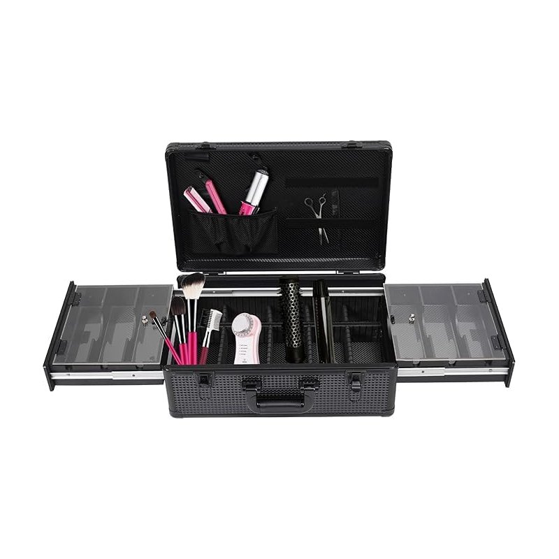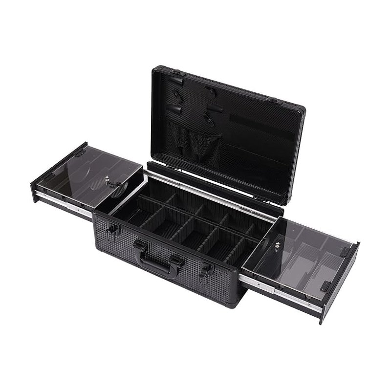 - 【Large Capacity】This barber case concludes two blade/guard caddies for your scissors and other sharp objects, an interior tray for combs. In addition, there is a drawer on each side of the case, and there are many compartments at the bottom. Such a large capacity allows you to store many items and also facilitates you to classify items.