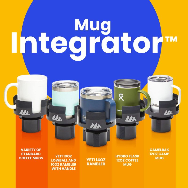 - TRAVEL WITH YOUR FAVORITE MUGS: Travel with ease & comfort. The Mug Integrator mug holder installs into your vehicle’s cup holder in just seconds and holds most oversize (3.5”-4.0”) coffee mugs in a firm, snug fit with 4 rubber tabs. Travel with your version of YETI, RTIC, Hydro Flask, and almost any household mug.