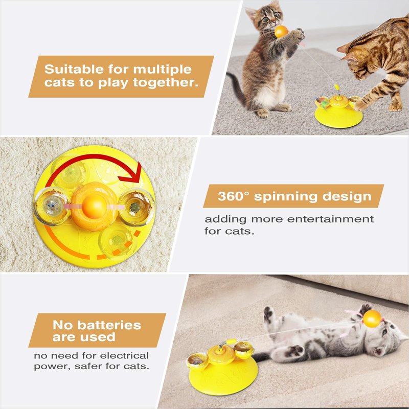 - 【Highly sensitive light-up ball】: Cats are naturally attracted to moving objects, especially those that light up. Our cat spinning windmill toy is equipped with a highly sensitive light-up ball, which attracts your cat's visual attention and increases their interest in interactive play.