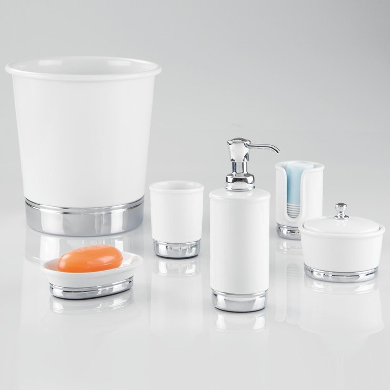 InterDesign York Ceramic Soap & Lotion Dispenser Pump, for Kitchen or Bathroom Countertops - White/Chrome