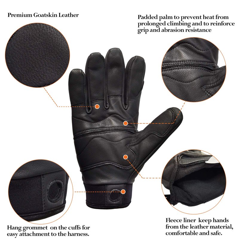 - Comfortable & Durable:Premium grain goat skin for the perfect balance between durability and dexterity,soft and comfortable. Palm is padded to protect from heat generated from long rappels.