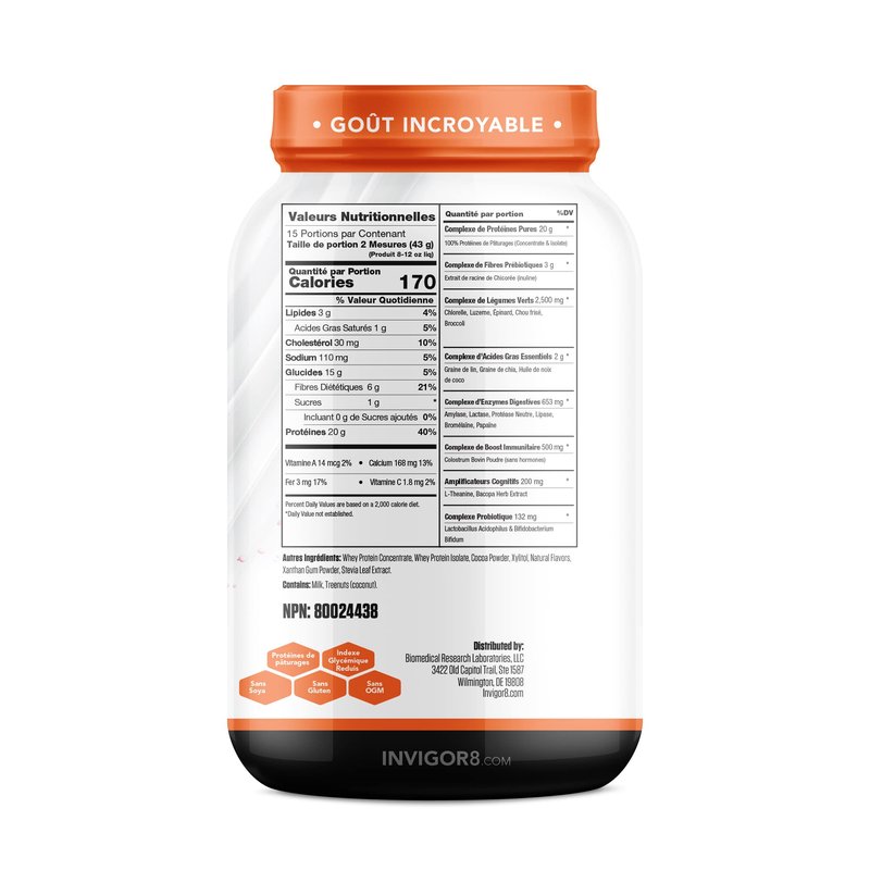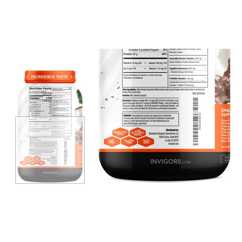Inspired by nature, and backed by science, our products go through rigorous testing and the ingredients we use are validated by scientific studies. We develop each formulation at our U.S. based, FDA-registered production facility, where we use the same level of active ingredients that were used in the studies. INVIGOR8 SUPERFOOD SHAKE. Build lean muscle, control hunger, and reduce body fat while giving your body nutrients. This all-in-one protein shake gives you protein, probiotics, and immunity boosters for health from the inside out WHOLE BODY HEALTH. This meal replacement shake delivers 21 g of grass-fed whey protein and 2,500 mg of green veggie complex. Driven by nutrients, it is gluten free, dairy free, soy free, and has a low glycemic index with no artificial ingredients