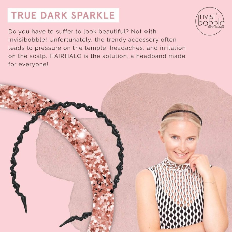 - MINIMALISTIC CHIC: The Invisibobble HAIRHALO is featured in two designs: True Dark Sparkle, a soft and shiny black fabric with fine black pearls, and Let’s Get Fizzycal, in the good cold champagne color with metallic satin fabric. Whether worn during the day or at night, the stylish hair accessory is a real eye-catcher at all times!