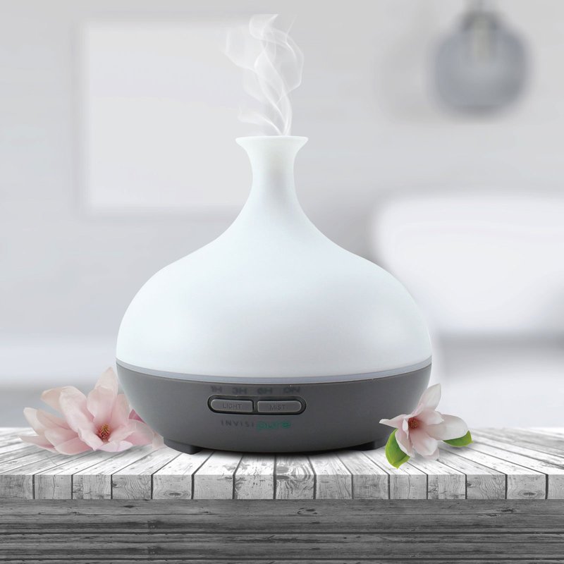 The InvisiPure Drop Aromatherapy Diffuser and Humidifier will diffuse your favorite essential oils and humidify your room. Our premium diffuser features dual water level sensors to increase reliability and safety. Nightlight feature is great for kids and soothing relaxation before bedtime.