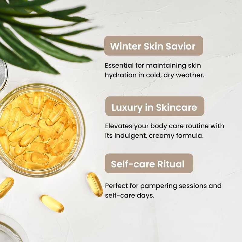 - π Enhanced with Hyaluronic Acid: Infused with Hyaluronic Acid, this body butter locks in moisture, helping to maintain the skin's hydration levels and reduce the appearance of fine lines and wrinkles. Experience plumper, more youthful-looking skin with every use