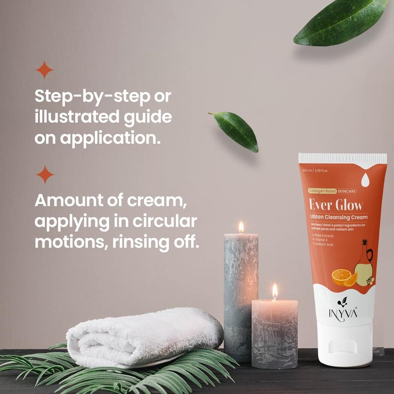 - Triple-Action Formula: INYVA EverGlow Ubtan Cleansing Cream is powered by a potent blend of Algae Extract, Vitamin E, and Salicylic Acid. This unique combination offers a comprehensive skincare solution that detoxifies, nourishes, and exfoliates, revealing a clearer, more radiant complexion.