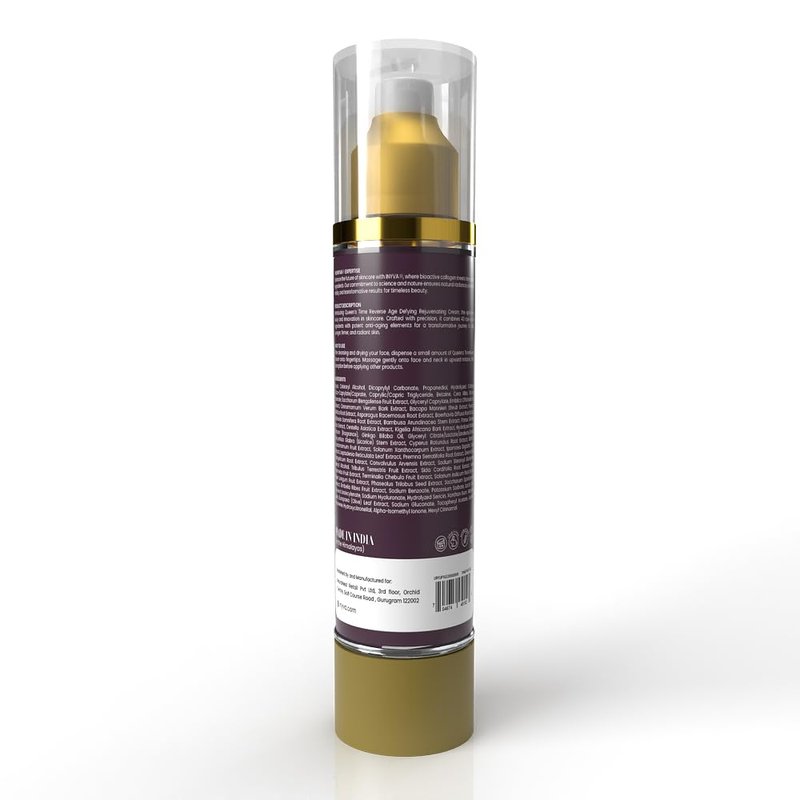 Embark on a journey to timeless beauty with INYVA Queen's TimeReverse Skin Rejuvenation Cream. Meticulously formulated with top-tier anti-aging ingredients, this 50 ml cream is your ally in the fight against aging. Revolutionary Ingredients for Age-Defying Results: Our advanced blend of hydrolyzed collagen and elastin works synergistically to visibly reduce signs of aging. These potent ingredients are known for their ability to restore skin's natural firmness and reduce the appearance of fine lines and wrinkles. Ultimate Hydration for a Youthful Glow: Hyaluronic acid, a cornerstone of our formulation, ensures deep and lasting hydration. This powerful moisturizer holds up to 1000 times its weight in water, keeping your skin hydrated, plump, and vibrant. Specially Designed for Your Skin: Whether you have dry, oily, combination, or sensitive skin, INYVA Queen's TimeReverse is designed to integrate seamlessly into your daily skincare routine. Our commitment to safety and efficacy means you're getting a product that is not only effective but also kind and gentle to your skin. Commitment to Quality: At INYVA, we believe in creating products that reflect our high standards. This cream is paraben-free, cruelty-free, and made without harmful chemicals. Trust in our dedication to providing a high-quality product that respects both your skin and the environment. Indulge in the luxury of INYVA Queen's TimeReverse and take the first step towards a more youthful, radiant you. Add it to your cart today and embrace the beauty of ageless skin.