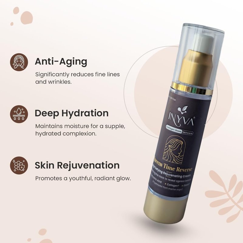 - Advanced Anti-Aging & Anti-Wrinkle Care: INYVA Time Reverse Anti Aging Cream is formulated with Collagen, Hyaluronic Acid, and Elastin to visibly reduce fine lines and wrinkles, promoting youthful and firmer skin.