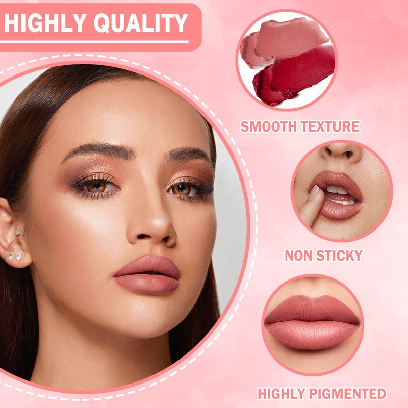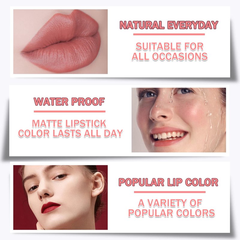 • 【Lightweight and Long Lasting】Nude lipstick is light and silky in texture, smooth and docile, showing a classic matte velvet effect, non-drying, non-fading, non-stick cup, long lasting and waterproof, the color of the matte lipstick can last all day long!