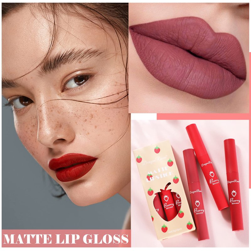 • 【3 Color Matte Lip Stain Set】Matte lip stain set, a variety of popular colors, you can match it as you like, with a touch of silk, like a mist caressing the upper lip, creating a high-grade soft mist matte effect.