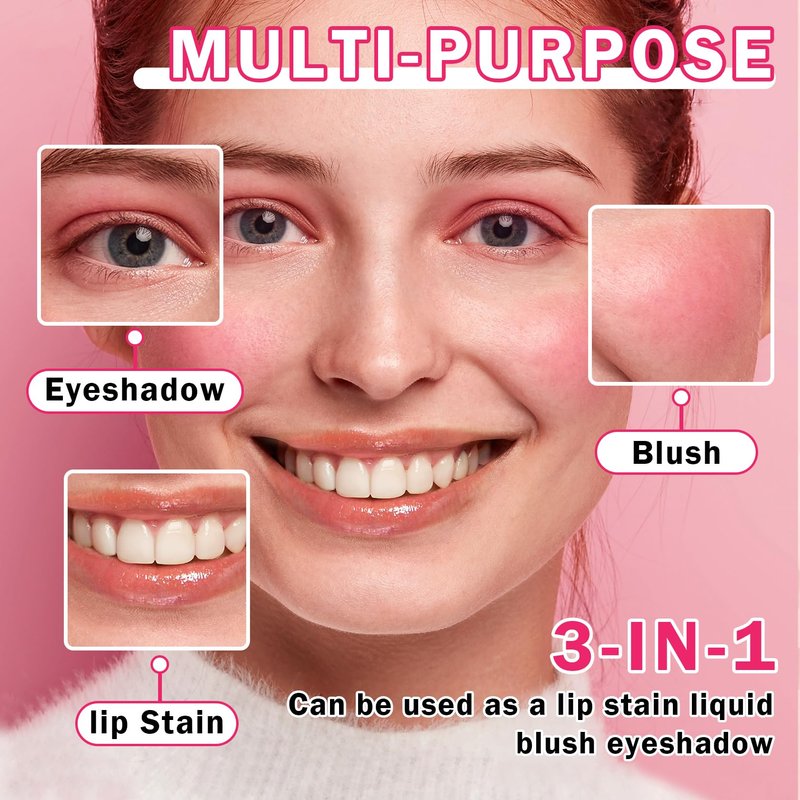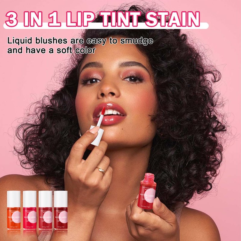 - 3 IN 1 LIP TINT STAIN: Multi-use lip stains are applied as smooth as velvet. They not only give your lips a beautiful hue, but also used as liquid blush and eyeshadow
