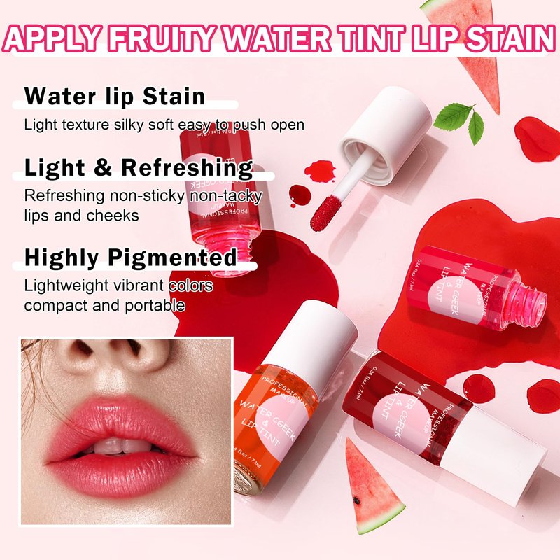 - VIVID COLORS LIP STAIN: Water tint lip stain has a fresh, sweet and pleasant fruity smell. Lip tint stain has bright colors like fruit juice, which can easily create charming lip makeup and show your charm