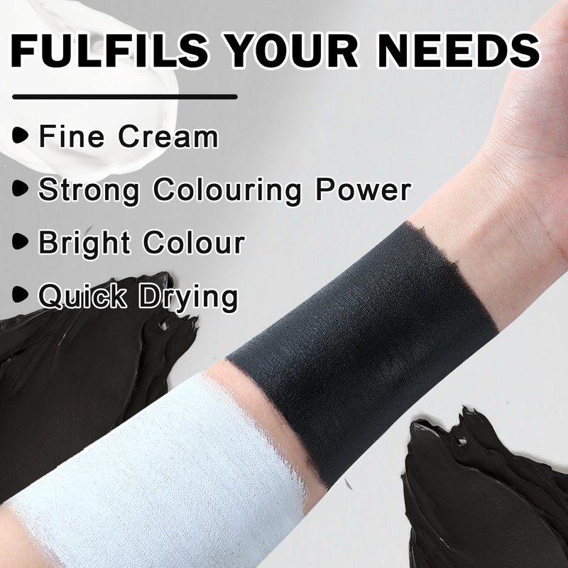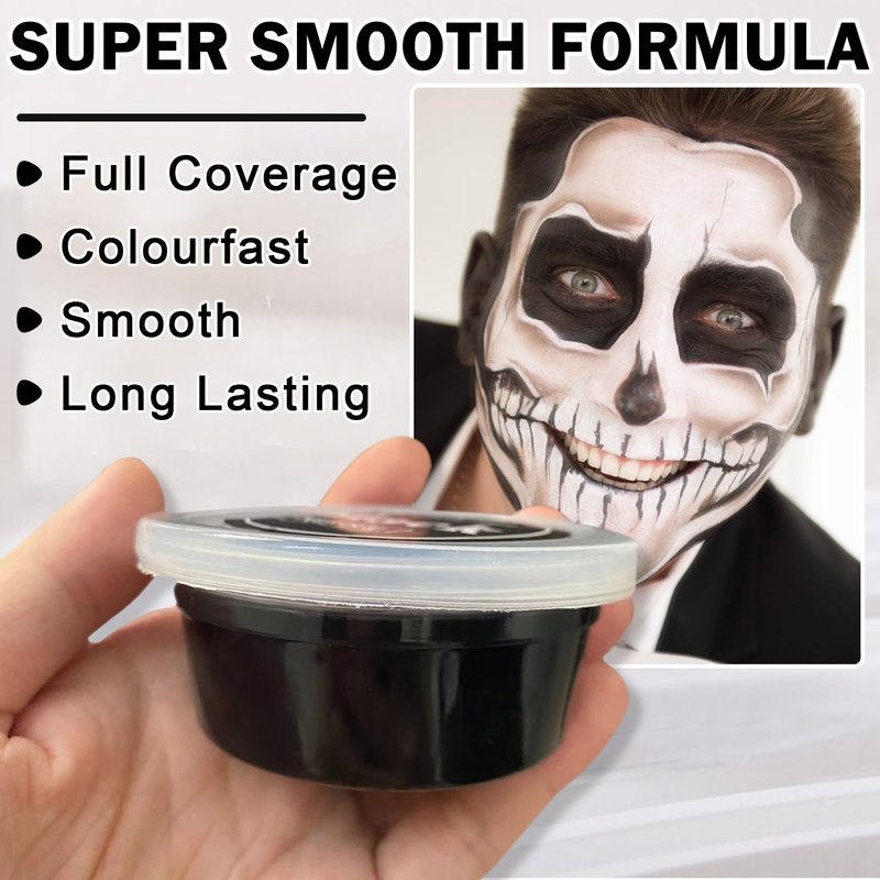 Black and White Face Body Paint has an ultra-smooth texture that is easy to apply evenly on the skin, providing full coverage and good ductility. White foundation goth white face paint can be used with black face paint. It is designed for all skin types and is easier and more natural to use.