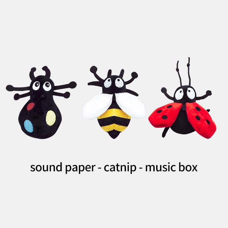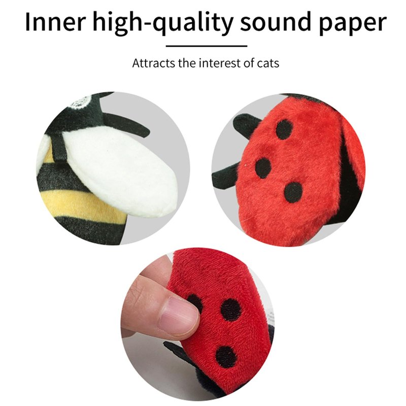 ipawspace Soft Plush Cat Toys for Indoor Cats Kitten Sound Box Inside Kitten Soft Interactive Plush Toys Bee Ladybug Spider Realistic Sound of Insects 3 Pack