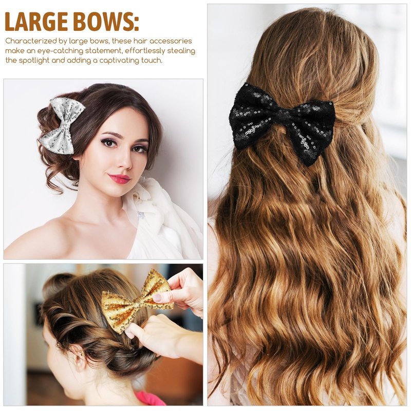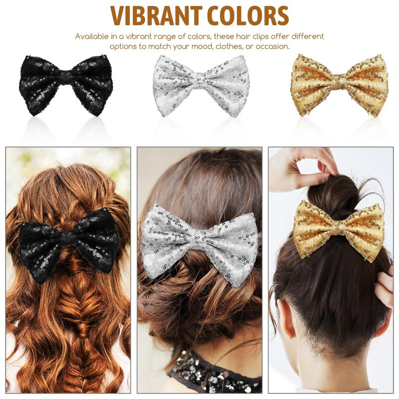 - Add a Touch of Glamour:: With their bling sequins and stylish design, our glitter bows are the add glamour to any hairstyle. Whether it's a casual day or a special event, these bows will definitely make your little girl feel like a princess. Choose from a variety of colors - black, gold, or silver - to match any outfit or mood