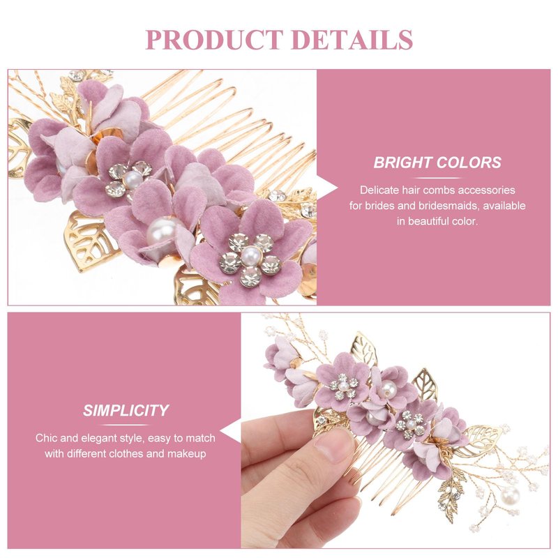 iplusmile Wedding Hair Comb, Pearl Flower Bride Hair Clip Accessories, Hair Side Comb Clips for Bride Bridesmaid Women Girls, Purple