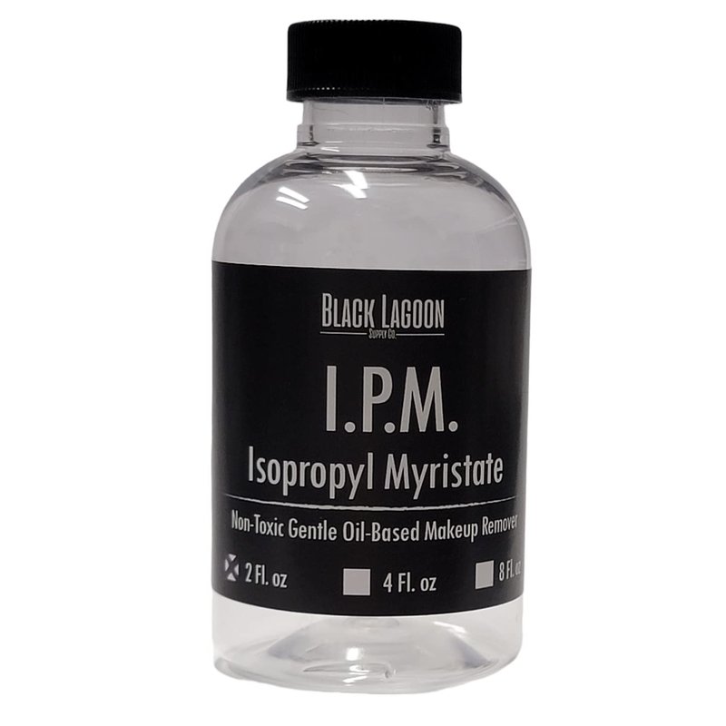 Gentle make-up remover which removes many types of make-up including (pax) pros-aide and grease makeups. Can be used to clean airbrushes and is often used to thin silicone based airbrush makeup. Used in many OTC cosmetics and is considered to be an emollient that softens the skin. Counteracts the “oily” feel in some lotions. Absorbs quickly. Oil Soluble. Not Soluble in water. Removes Pros-aide and Pax Paint. Can be used to smooth Monster Clay and oil based clays. 100% Isopropyl Myristate.