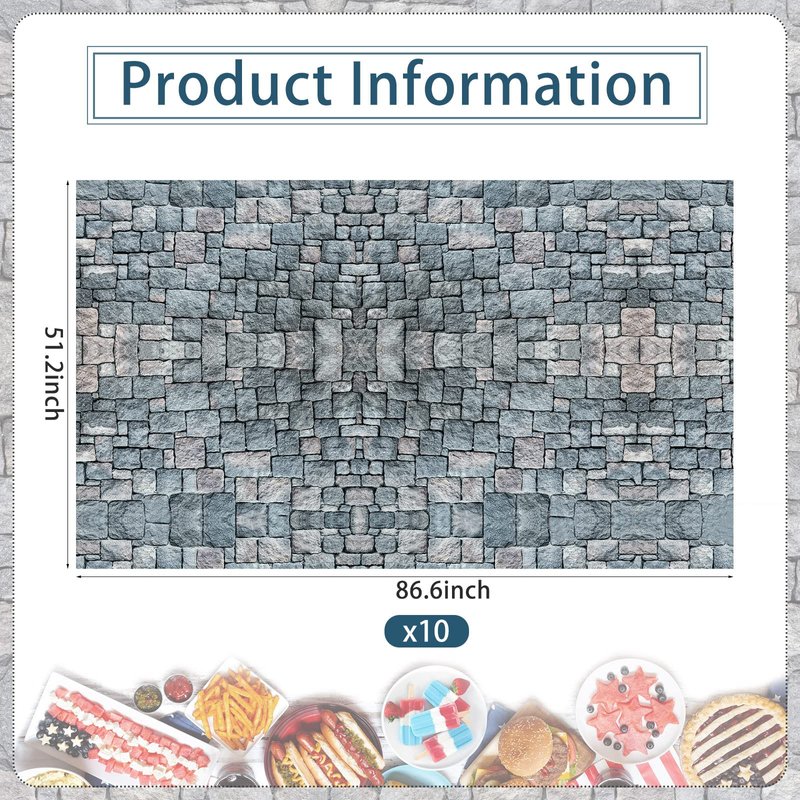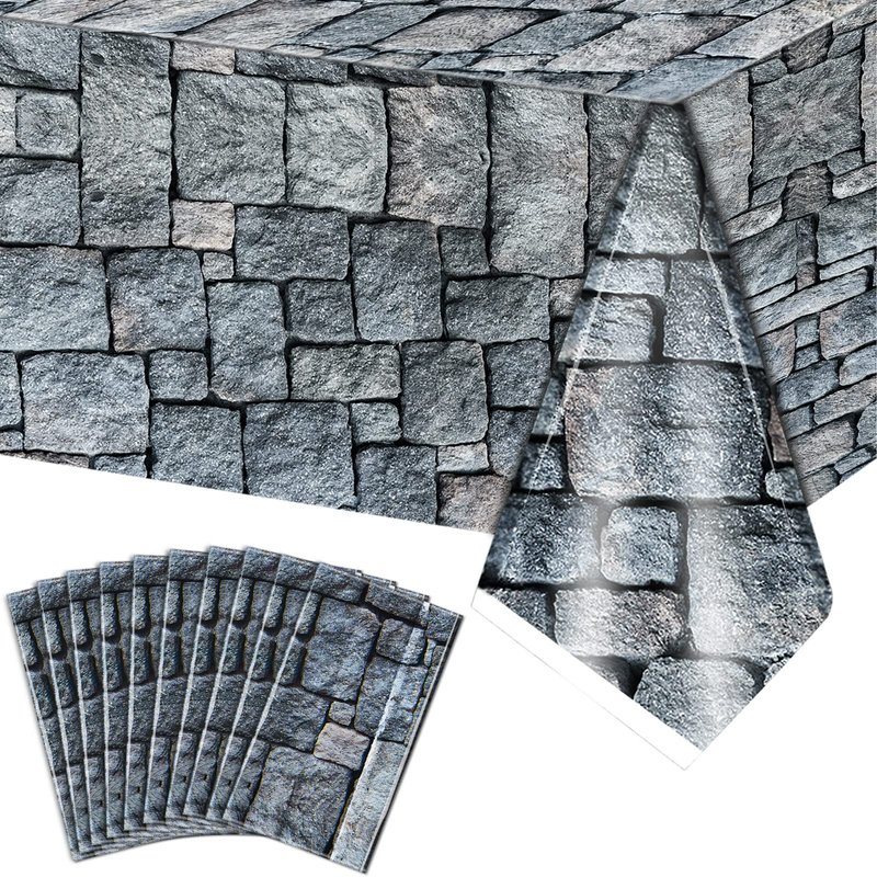 Irenare 10 Pieces Cobblestone Tablecloth Stone Printed Table Cover Medieval Table Decoration Plastic Tablecloth Stone Brick Tablecovers for Medieval Castle Knight Themed Party Supplies, 4.3 x 7.2 Ft