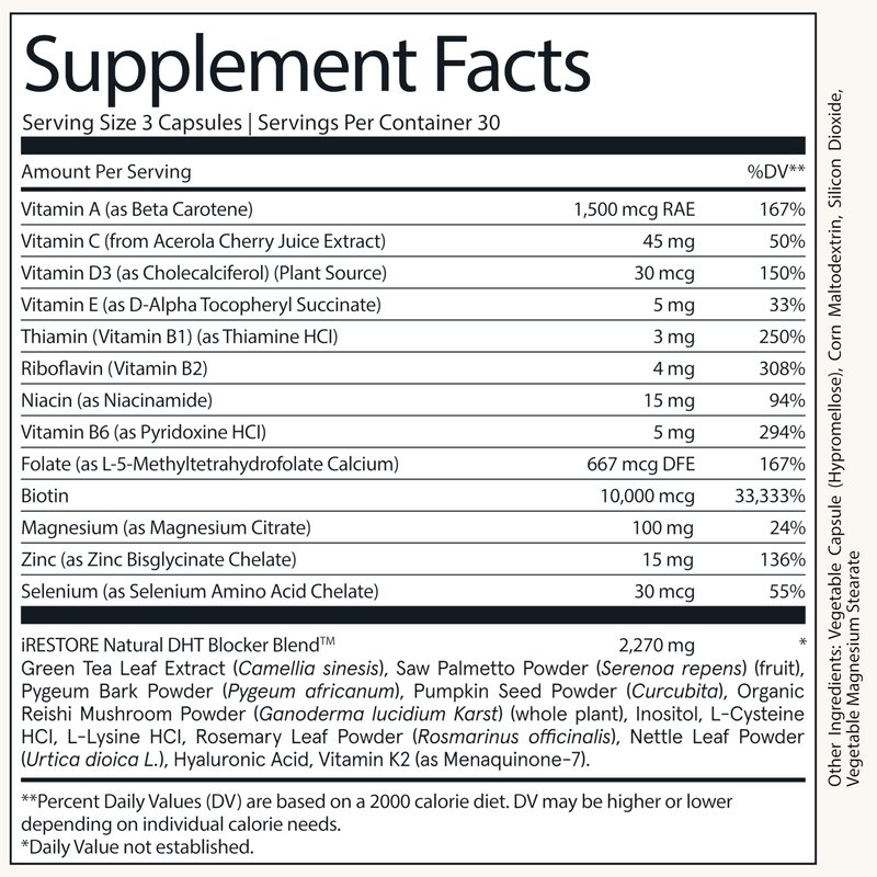 iRestore Hair Growth Supplement – Natural DHT Blockers & Multivitamin Blend – Vegan, Non-GMO, 90 Capsules – Supports Thicker, Stronger Hair for Men and Women – 2-Pack