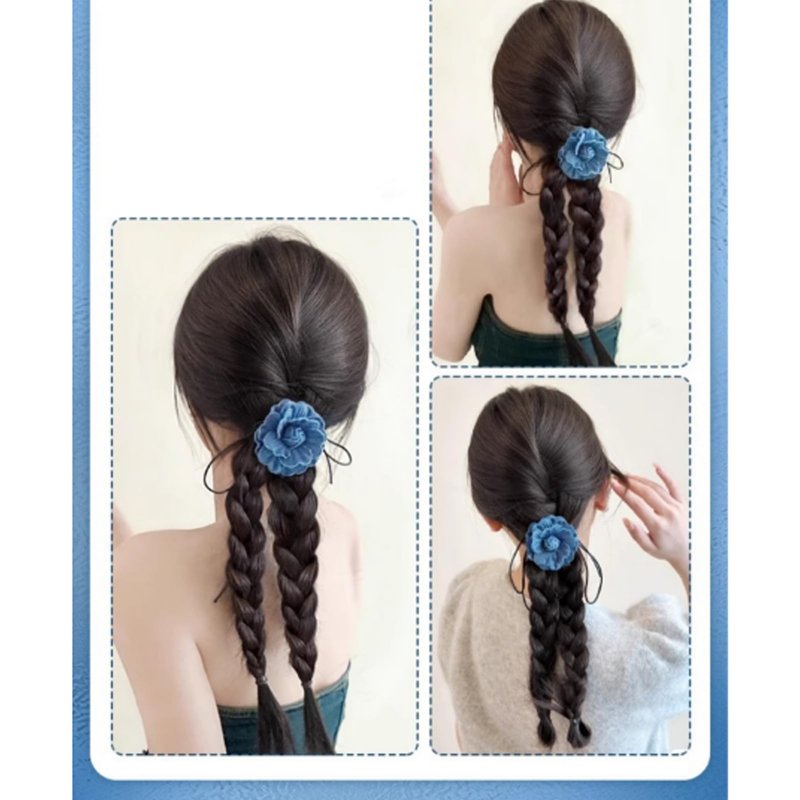 - Made of premium synthetic heat-resistant fiber hair, decorated with a removeable jeans flower, fashionable, liveliness, stylish and versatile, and making the braided ponytail extension looks and feels like your own.
