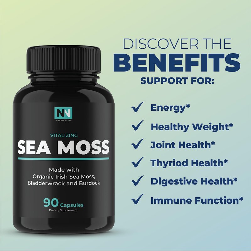 - SEA MOSS COMPLEX: Nobi Nutrition’s Sea Moss capsules contain All-Organic varieties of Irish Sea Moss and Bladderwrack. Combined with Organic Burdock Root, they contain the most vital vitamins, minerals, and nutrients we need.*