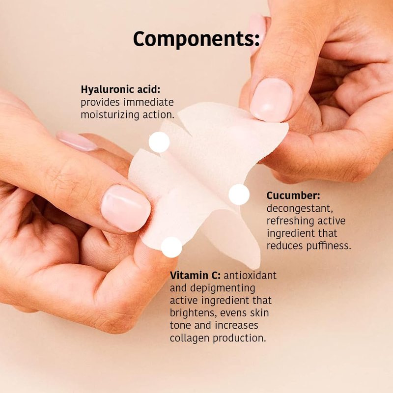 - EYE MASK: These are anti-fatigue and illuminating eye patches that help reduce dark circles, diminish puffiness, and brighten the tired and dull look thanks to their formula enriched with vitamin C, cucumber, and hyaluronic acid. It's a mask that has undergone efficacy testing and will reveal a more radiant and hydrated eye area in just 15 minutes. Pack - Contains 5 pieces