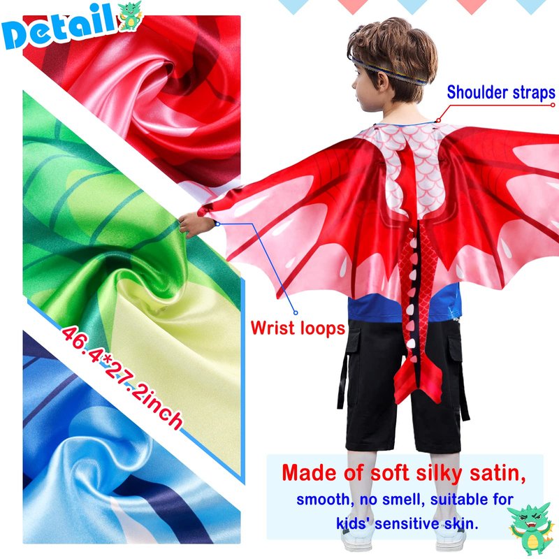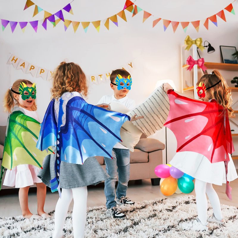 - Triple the Fun: Ignite your child's imagination with our exciting kids dragon costume set, which includes three vibrant dragon wings and three matching dragon masks. Each set of wings features realistic patterns that look like they came straight out of a Jurassic World textbook
