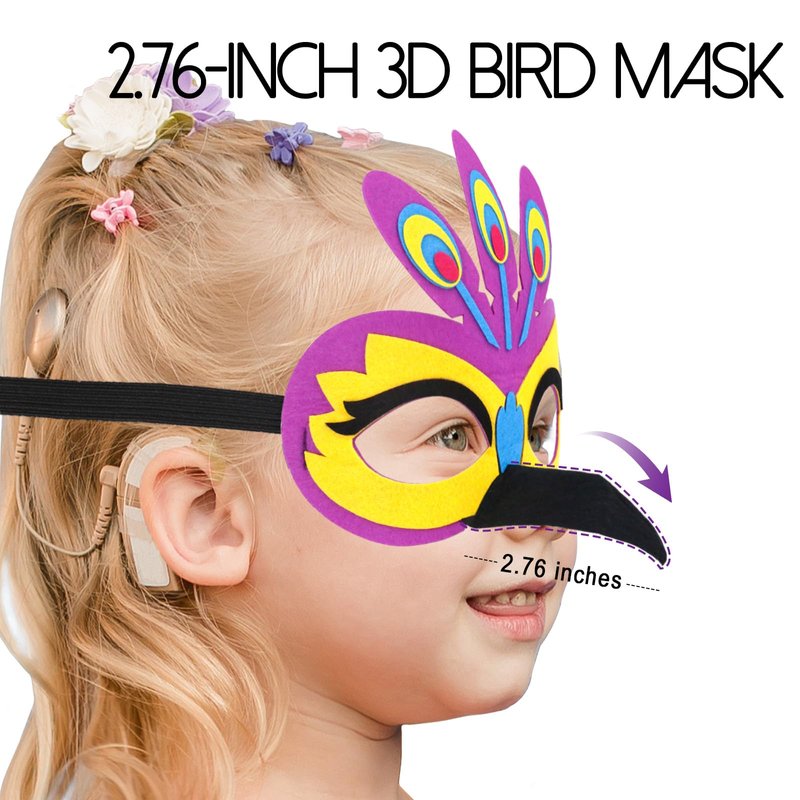 - Highly detailed felt bird masks with elastic strap