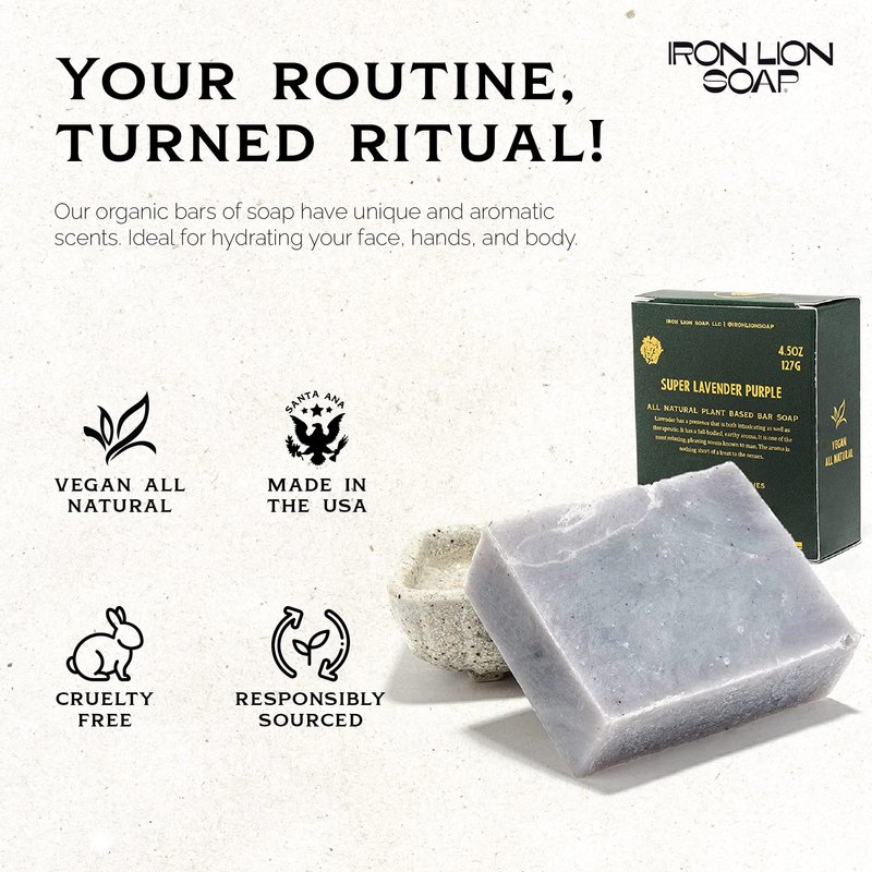 - FRIENDLY COMMITMENT: We take pride in our friendly and plant based approach. Our natural soap comes in post-consumer recycled packaging, embodying our dedication to both your well-being and the environment. When you choose Iron Lion Soap, you choose a greener tomorrow. Perfect for sensitive skin, our handmade soap makes every wash a step towards a clean and fresh feeling.