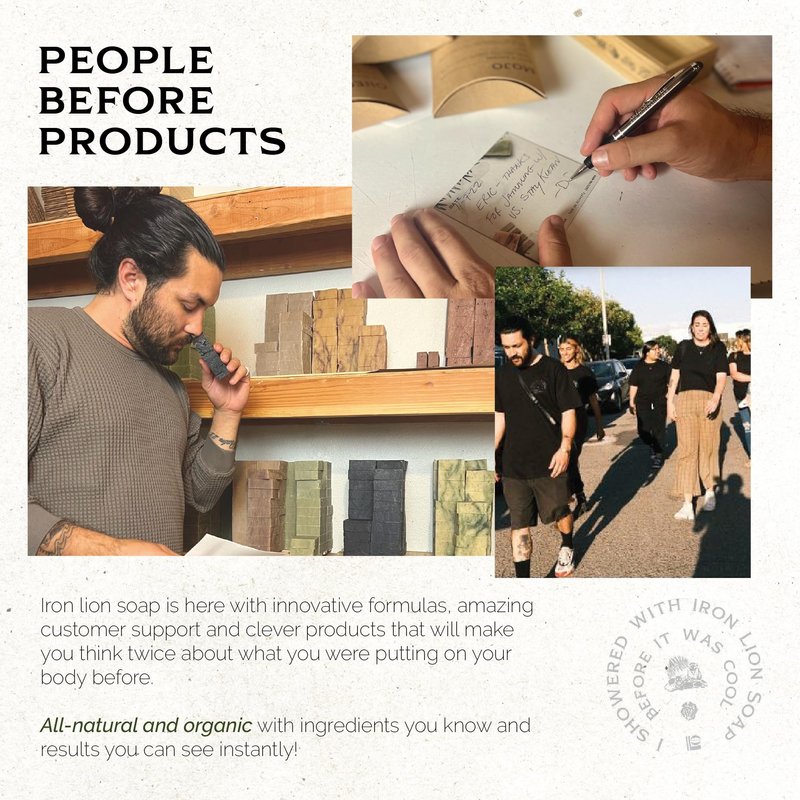 Here at Iron Lion Soap, we encourage a healthy body and mind. Starting with your skin, which is the first line of protection from infection and disease. Our standards are set on old traditions. For every choice that we are faced with, we take the time to be conscious of the impact on our generation and our environments. Born in 2008 from the necessity of wanting a better soap for our family & friends. We were born in our small home office in Irvine, California. Just a short year later in 2009, Iron Lion Soap was established & has grown to be enjoyed by everyone who comes across a bar of our soap. Outgrowing the office upstairs in our home, the natural move was to the garage. In 2015, we yet again outgrew our small home garage and moved into The Lion’s Den, our global headquarters in Santa Ana, California just minutes from where it all started. Our obsession began when we searched high and low for an honest, natural, high-quality bar of soap but the hunt ended quickly when nothing on the market met our needs or standards. Fast forward nearly 13 years, and Iron Lion Soap is still here providing you with acne eliminating, skin clearing, and moisturizing products that are made with care and attention to detail. Fairness isn’t just a concept, it’s a way of life for us! In almost everything we do from the content we put out, to our packaging, we strive for equality. Just because you didn’t know that store-bought soap is ridden with chemicals, doesn’t mean you can’t learn about Iron Lion Soap and the power of plants! Iron lion soap is here with innovative formulas, amazing customer support, and clever products that will make you think twice about what you were putting on your body before. Featuring all-natural and organic products with ingredients that you know, and results that you can see instantly!