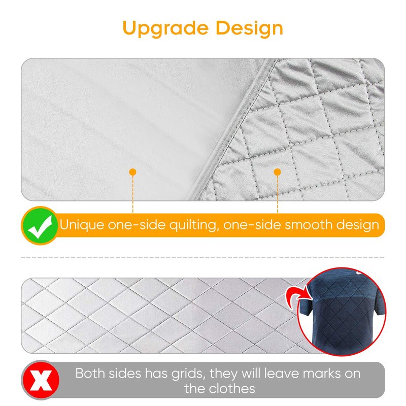 ★ Upgraded ironing pad thicken 20%.It has thick padding which can withstand high heats up to 500°F. This ensures that you can iron your garments without damaging the padding itself or the surface underneath.