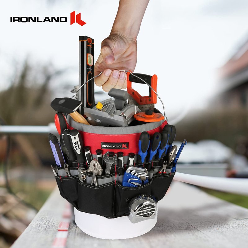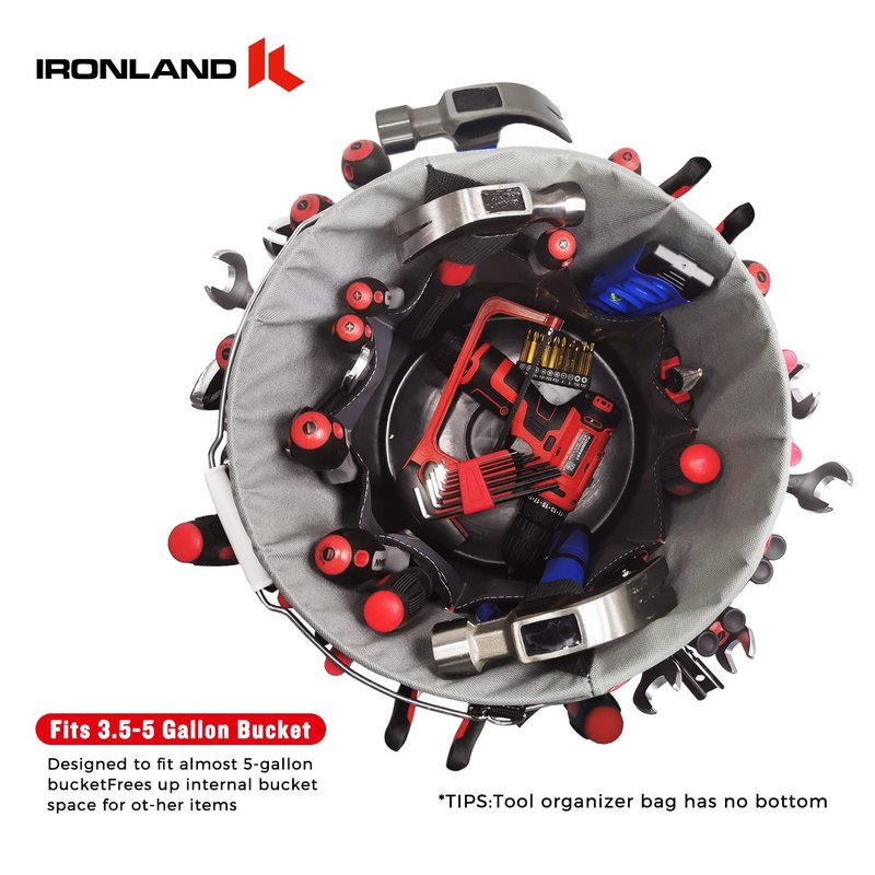 - 🧰Heavy duty construction: IRONLAND bucket tool organizer is inspired by garden worker, carpenter, builder, electrician and other people with practical skills who needs a bucket of tools. We choose above 10 different occupations and changed our design hundreds of times until it meets their needs. Finally we have this durable, tear proof and waterproof bucket organizer.
