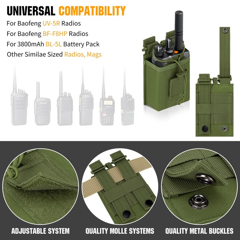 - Adjustable Fastener Design: elastic cord and detachable tape loop to secure the radio inside the radio pouch. The detachable tape loop inside the bag can be adjusted to tighten the radio at different height.
