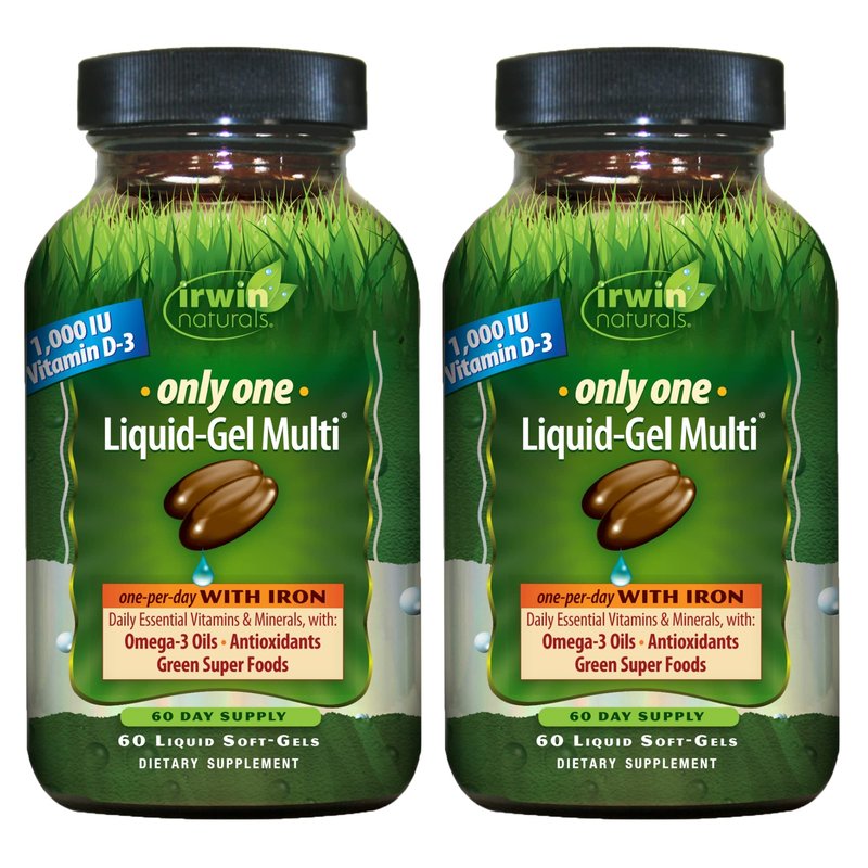 Irwin Naturals Only One Liquid-Gel Multi with Iron - 60 Liquid Soft-Gels, Pack of 2 - Omega-3 Oils, Antioxidants & Green Super Foods - 120 Total Servings